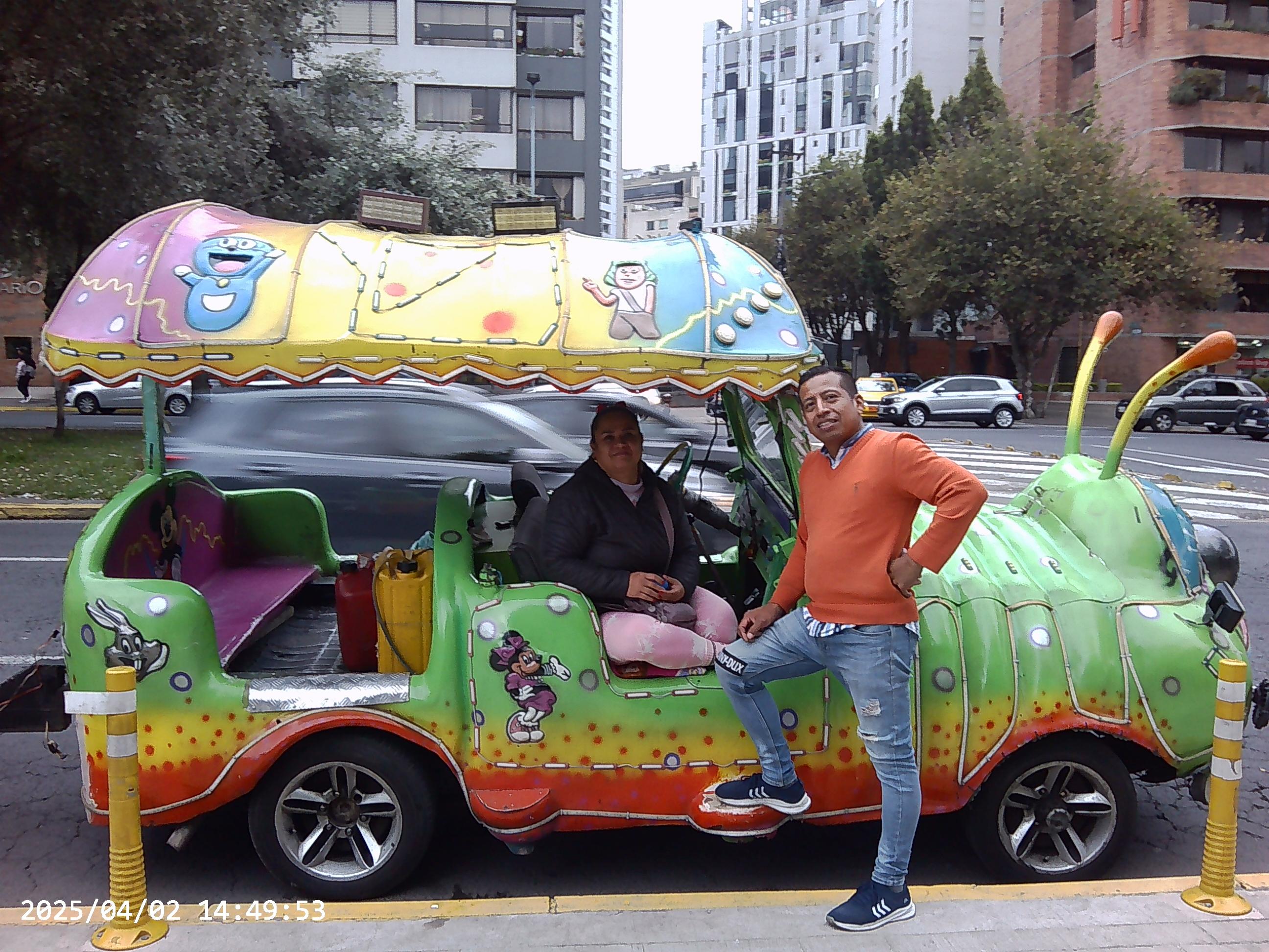 At La Carolina park, there are three gusanitos, a green one, a pink one and a yellow one. This past Saturday, I sat down with Hugo Andres, the owner and operator of the green gusanito. Hugo Andres is a cheerful man in his forties who inherited the business from his father, who operated it for 30 years before Hugo took over. It truly is a family business, with a fantastic track record. Despite the bobbing and weaving in Quito traffic, there has never been an accident, and no one has ever fallen out. This is particularly impressive when you realize there are no seatbelts and the train travels at approximately 20 miles an hour.