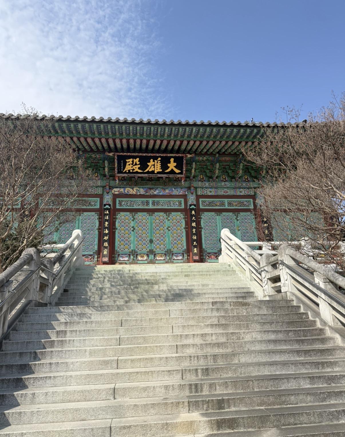 Korean Buddhism is deeply connected to the environment. Temples are always built in the mountains, deep in nature, far away from busy cities. This helps people practice what Buddhism teaches, like calmness, focus, and deep appreciation for the natural world. 금강사 (Geum-gang-sa) is actually located right in the center of 구미 (Gu-mi), just across the street from the giant high-speed train station. However, it is located on the top of a hill, where it is surrounded by trees, creating a quiet forest with fresh air and mountain air. It was very easy for me to feel at peace there, and I was able to meditate, reflect and feel at ease.