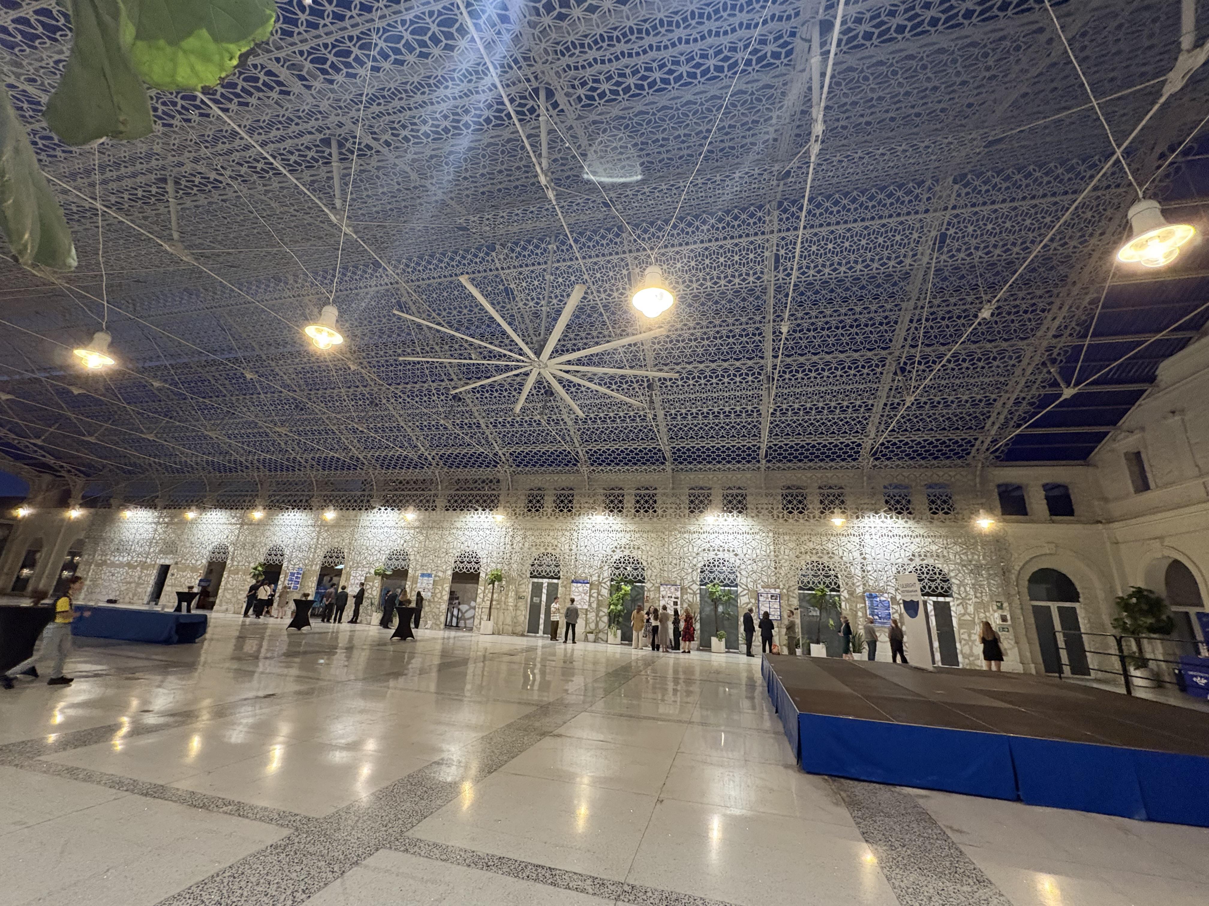 Finalmente, tuvimos nuestra última reunión en Casa Mediterráneo, un enorme espacio de reunión. Las altas fuentes de agua en frente del edificio hicieron que el espacio se sintiera espléndido. Los detalles geométricos intrincados en el techo y las puertas en forma de arco eran hermosos. Unirme para compartir nuestras perspectivas únicas me mostró cómo el conocimiento puede trascender los límites.