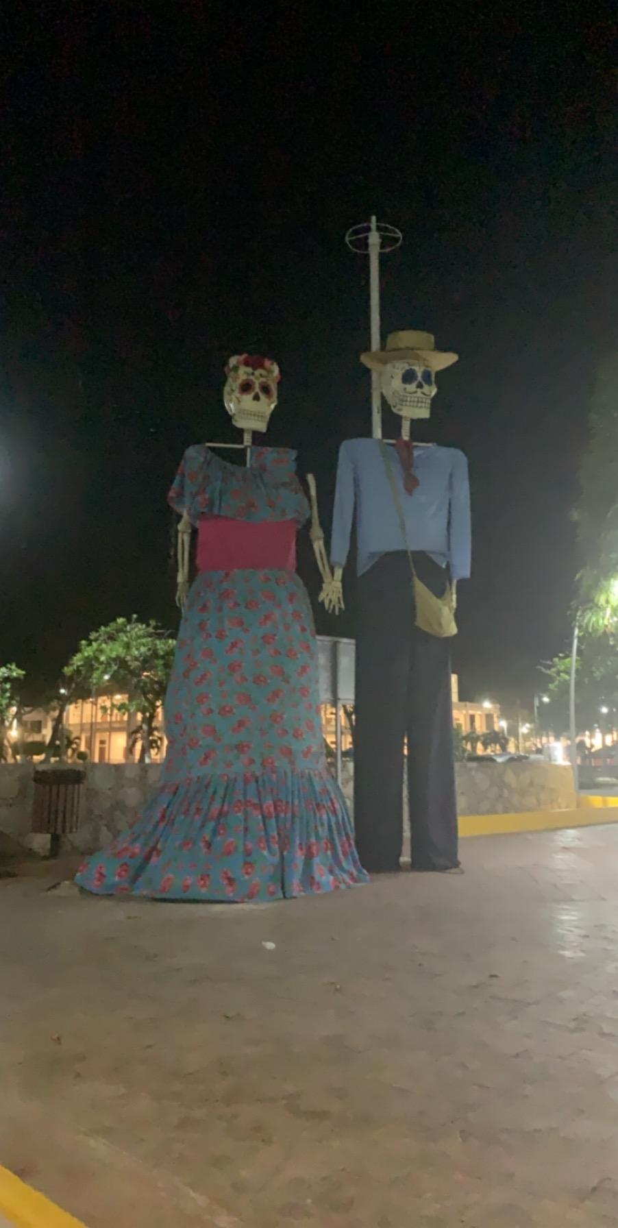 I learned about Día de Los Muertos! It is a traditional holiday that is celebrated between November 1 and November 2 here in Mexico. In the Yucatan Peninsula, where Mayan culture continues to be present and have major impacts, Día de Los Muertos is called Hanal Pixan. To celebrate this tradition, I traveled to Xcaret, a park near Playa del Carmen that is known for its celebrations for Día de Los Muertos. There, I ate traditional foods like cochinita and pib (a type of tamal only made for this time of year), saw traditional decorations in cemeteries and saw parades and celebrations throughout the night.