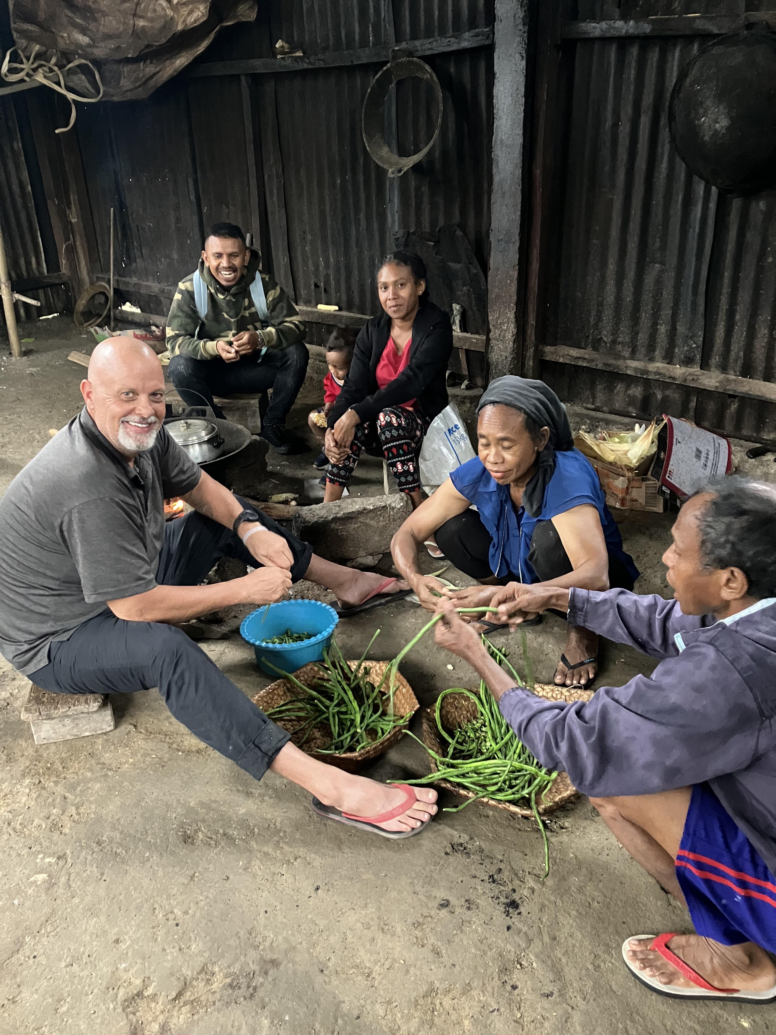 Over time, eating simple meals of rice and vegetables helped me slow down and feel more connected to my host family. During my first Christmas in Timor-Leste, I asked my family in the United States to help me buy a special gift. I wanted to build a dinner table out of bamboo for my host family. Now, some of us sit together at the table to eat. This small change has become part of our daily life and makes me feel more at home.