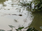 The Asian water monitor is a few feet long and looks very much like a lizard. In the water, they almost look like crocodiles, because you can only see the tops of their heads and bodies. They have long tails and long tongues that flick out of their mouths.