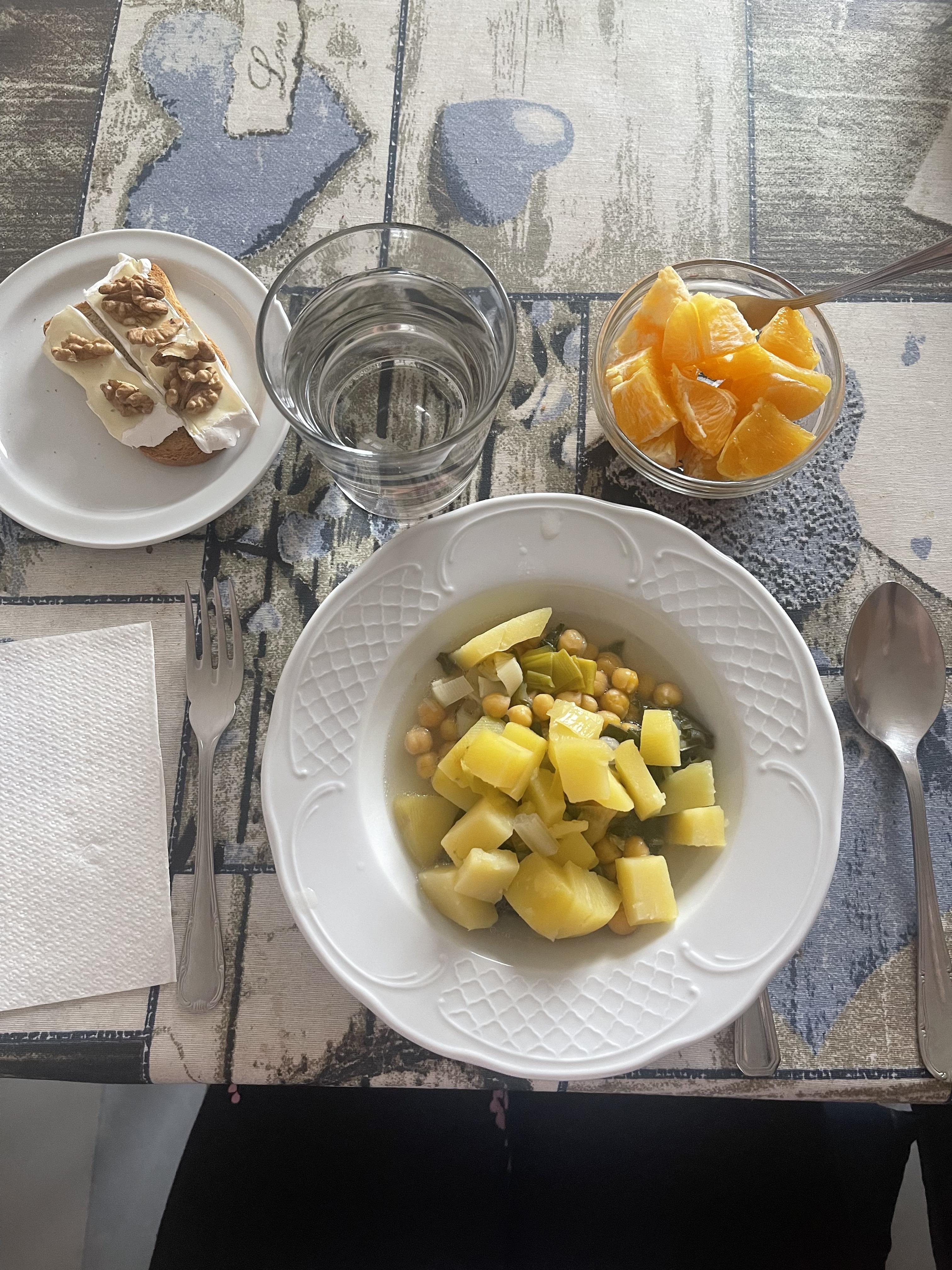 The food prepared by my host mom is amazing, so I have liked everything she has cooked for me so far! I have eaten paella de verduras, which is a meal of rice and vegetables. It was very good and heathy! I have also eaten meals of fried eggplants, chickpeas, potato, zucchini and tomato. You can easily find these meals in restaurants here; however, the ones that my host mom cooks are more healthy and fresh. There are so many restaurants here in Salamanca, and you can mostly get from one place to another by walking. I usually eat lunch and dinner at my host house. I only eat crossaints and other desserts when I go out to eat.