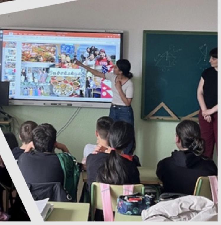 The students were very exicted to meet us and asked lots of questions about our lives, like our favorite music, pets and school life. We also shared presentations with the students and learned about them too. At the end, they gave us hugs and said goodbye.