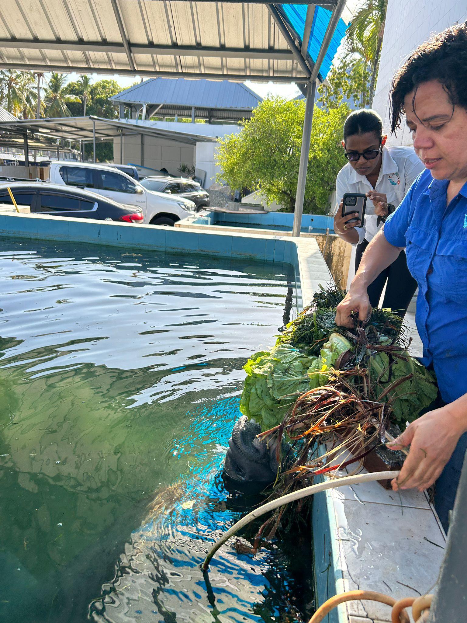 A manatee that is in rehabilitation/ Un manatí que está en rehabilitación