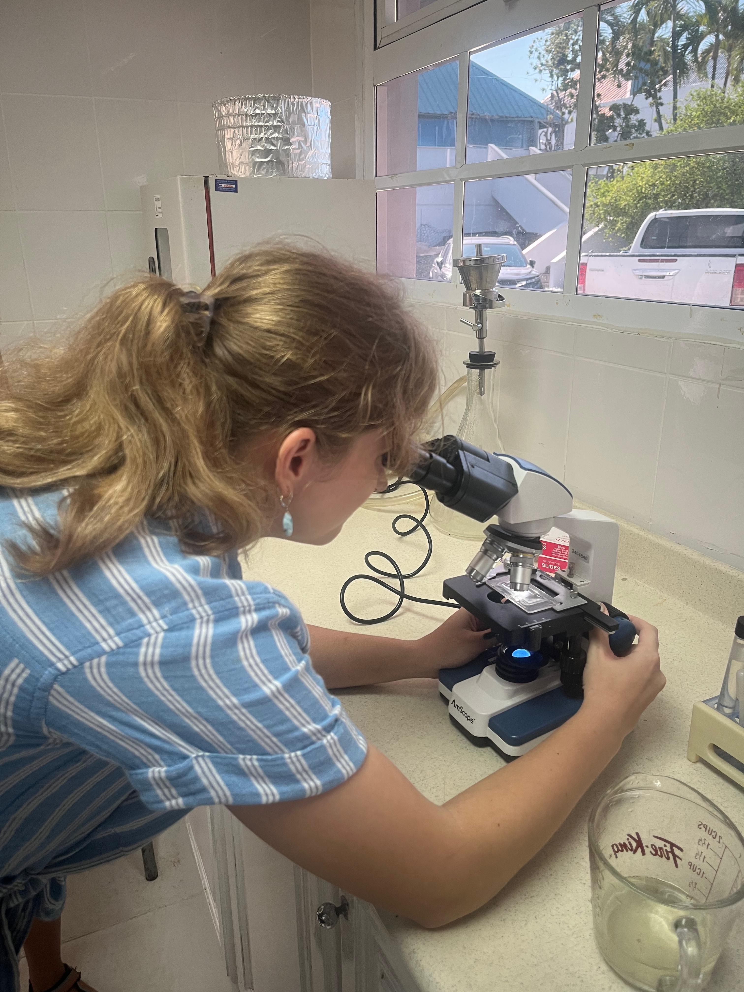 In the aquarium lab learning about microorganisms in ocean water/En el laboratorio del acuario aprendiendo sobre los microorganismos en el agua del océano