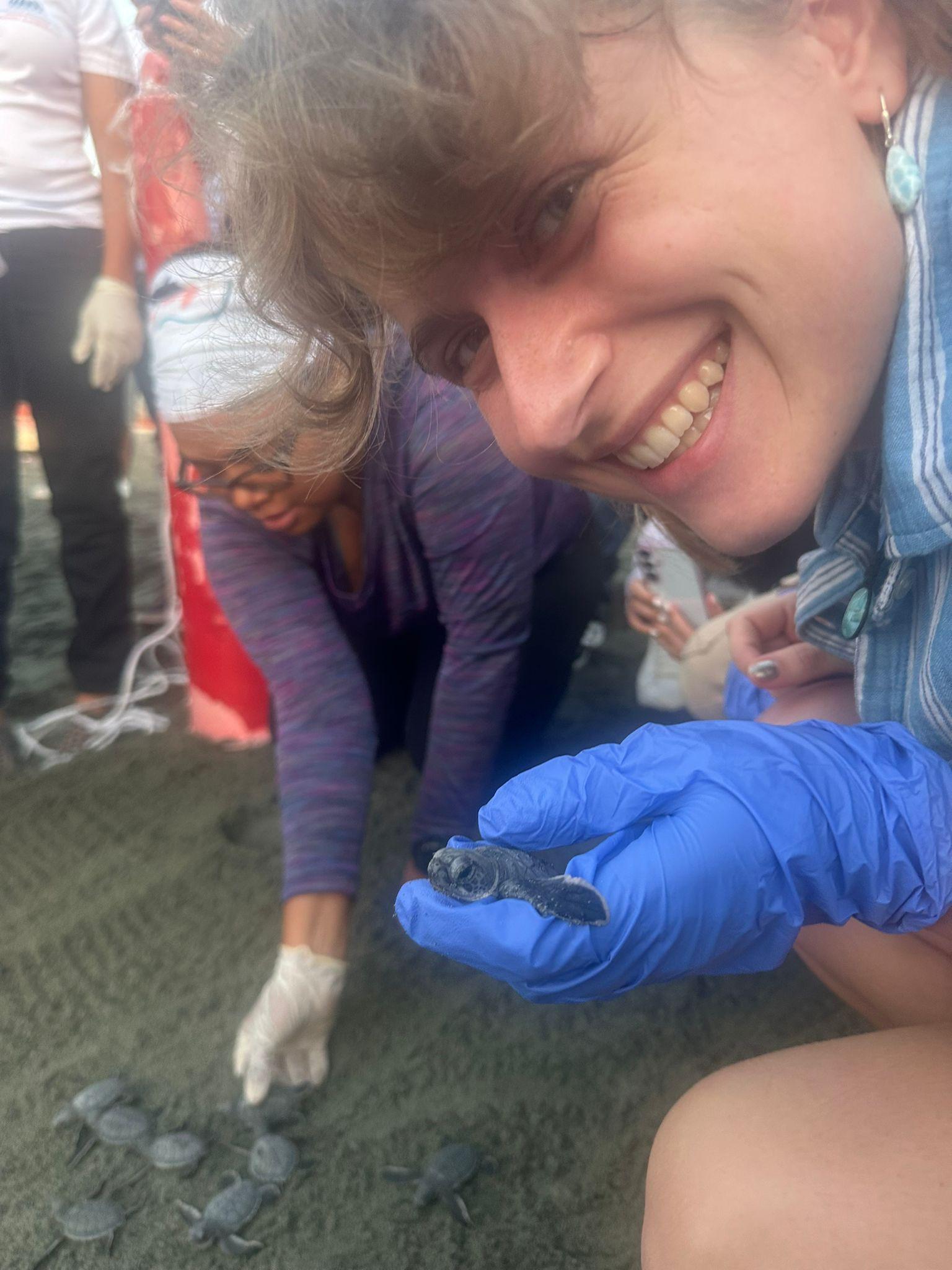 My friend holding a baby turtle/Mi amiga sosteniendo una tortuga bebé