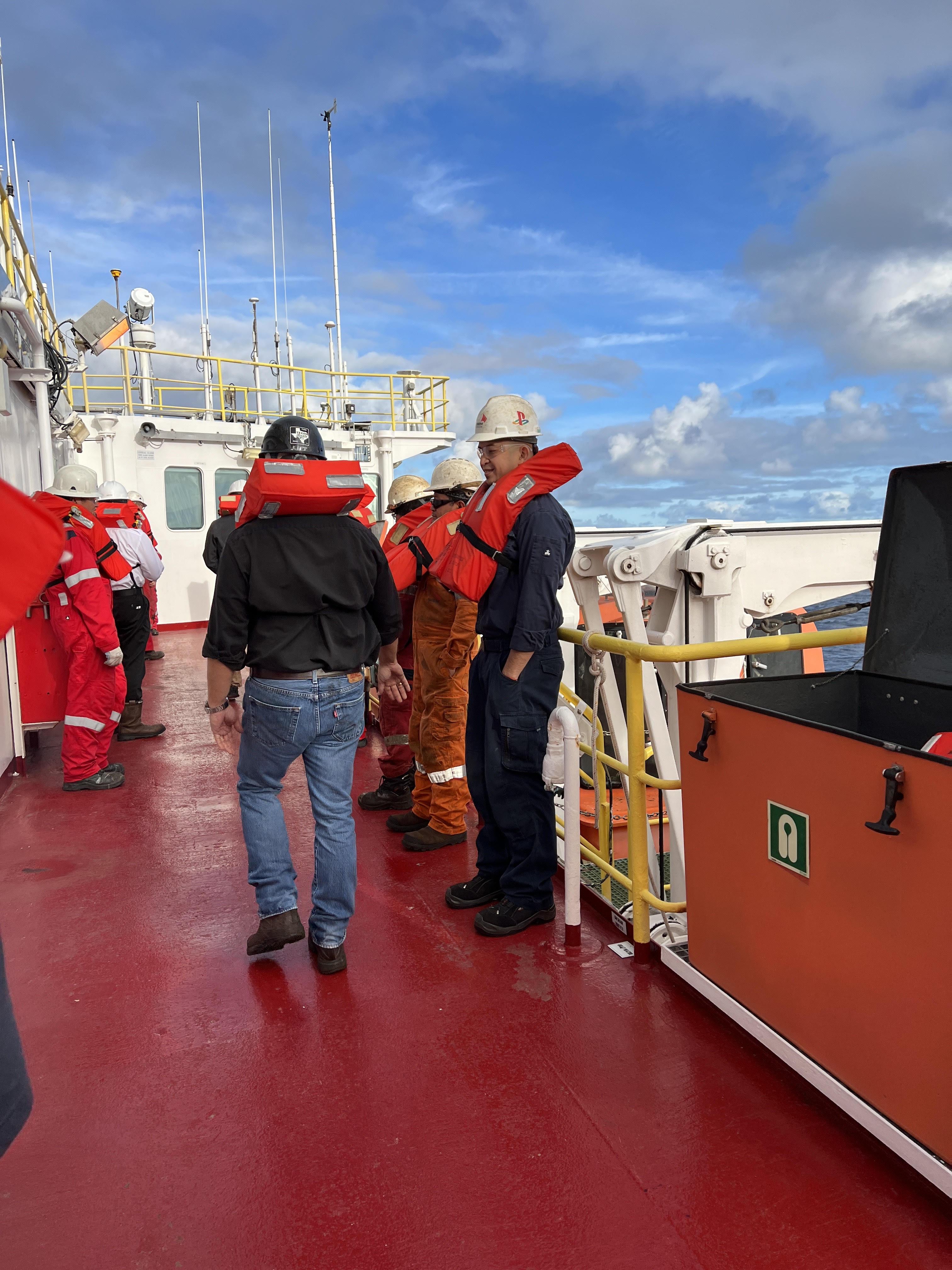 The moment we step onto the ship, there is a mix of different meetings where we learn about safety while sailing on the ship and protocol in the different labs on the ship. We meet the Captain and his team to understand how they plan to sail for the next two months. We meet with the drilling team to learn how they plan to collect the seafloor samples.