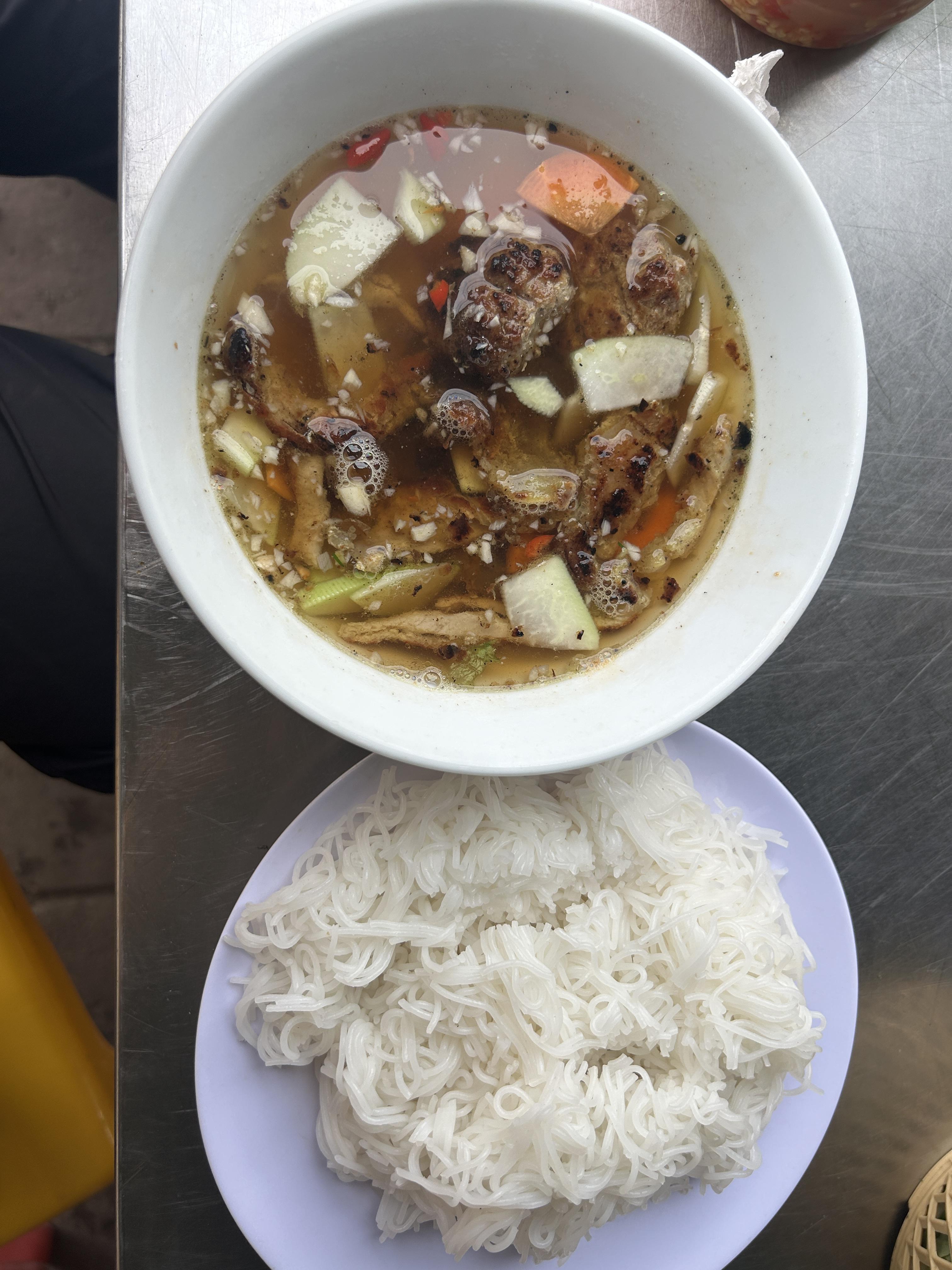 The best meal I ate this week was bún chả. Bún chả is a soup dish with noodles, pork and other vegetables.