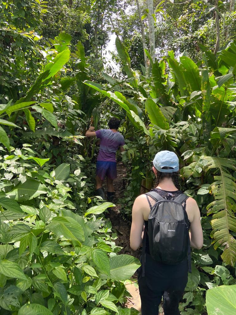The days exploring the rainforest consisted of piranha-fishing, sloth-sighting, monkey-feeding, fruit-eating and hiking led by our indigenous guides Francisca and Paime. During these hikes we swung on a natural tree-vine swing and learned how to make ceremonial crowns out of banana leaves. We picked fruit straight from the land and ate it, while giving some to the birds, monkeys, and giant fish co-habitating with us. I was able to squeeze in a soccer game with the children of a village along the Amazon River called Puerto Nariño, where I slipped multiple times in the muddy makeshift field, dirtying my body and clothes from head to toe. Although I had trouble cleaning these clothes in the river used for washing, it was worth it to be covered in this sacred earth.
